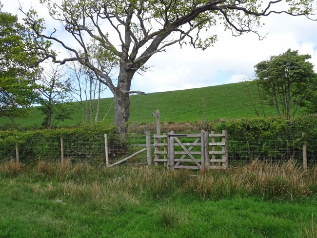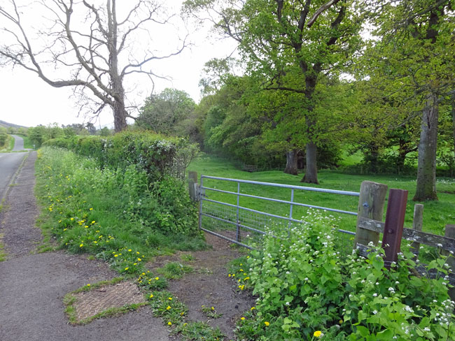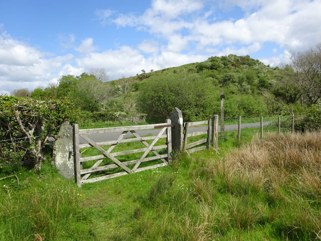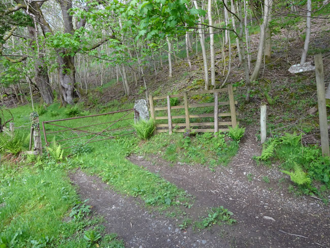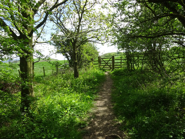 (12) After a short climb up the road there is a path leading off to the left through a metal gate. Note it is easier walking round the gate rather than trying to go through it!