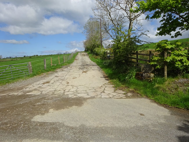 (43) After passing several houses the lane starts to climb and the tarmac starts to deteriorate. You are now starting to climb the lower slopes of Ling Fell.