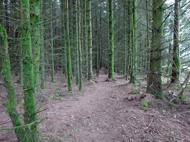 (22) As you reach the forest the wall ends and there is a stile into the forest (black marker on map). The path onwards follows the edge of the forest in the SAME DIRECTION as you were following the wall. The trick is to follow the path as best you can but ALWAYS keep the edge of the forest in sight and not far away (maybe between 20 and 60 metres).