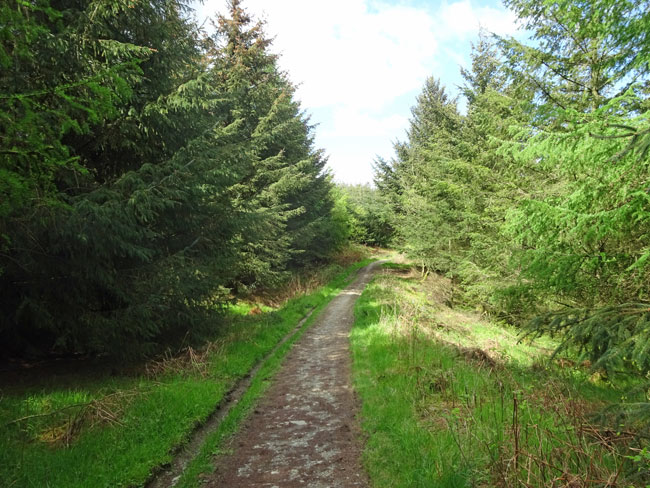 (24) After about 400 metres (orange marker on map) you will come to a track at right angles to the direction you are following. Turn right and follow this to the forest boundary. The path from here onwards is much easier to follow.
