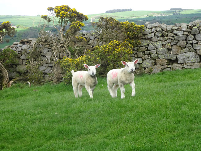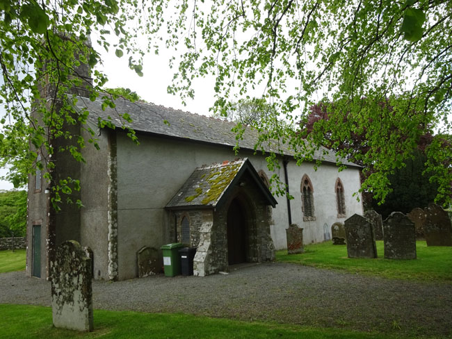 (41) The track continues through farmland and after 10 minutes reaches a road. Turn left onto the road and continue uphill, after a few hundred metres there is a road to the left. Ignore this and continue straight ahead. After about 10 minutes walking St Cuthberts church will be reached. Opposite the church there is a small lane marked Highside & Beckhouse. Turn right into this lane.