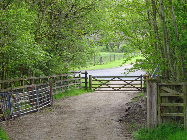 (3) Just after Riggs Farm you will see two gates ahead. Pass through the first gate.