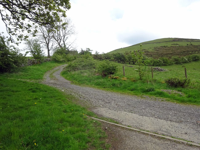 (17) After a few hundred metres a track will be seen to the the right signposted Elva Plain Farm. Turn right here and follow the track uphill.