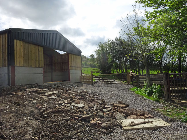 (7) As you approach High East House go through the gates. Although it looks like a private entrance there is actually a right of way here, once through the gates immediately bear round to the right and pass through a gate to the right of a new barn.