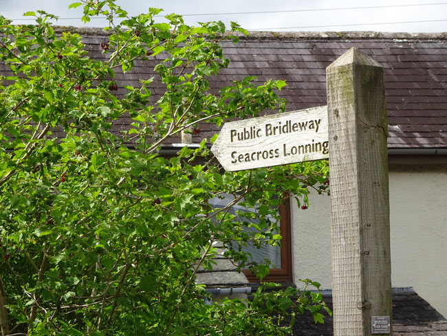 (13) 300 metres down the road you will see a small group of cottages on the left with a signpost pointing to Seacross Lonning. Although not immediately obvious from the road the path passes very close to the left of the cottage by the signpost